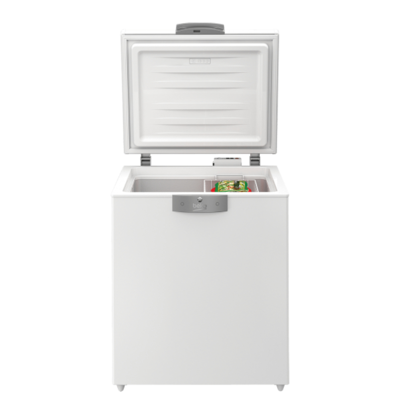 The freezer BEKO HS 221520 with its dimensions 72 x 76 x 91 cm / l x w x h / is ideal for smaller rooms. The model has a volume of 205 liters. The lid is located on the upper side and has an antibacterial rubber seal. The freezer is energy class A+ with an annual energy consumption of 224kWh. It has the option of quick defrosting and locking.