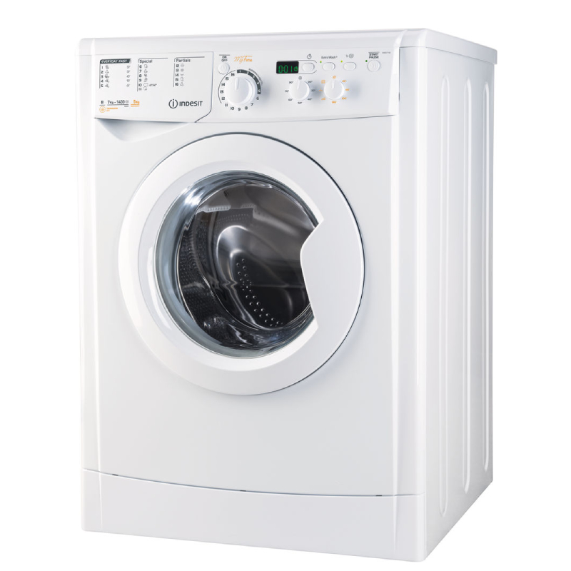 The washing machine with dryer EWDD 7145W by INDESIT has a washing capacity of 7 kg and 5 kg for drying. The Washing and Drying program 45 provides fast, efficient washing and drying for lightly soiled items. They will be clean and ready to wear in just 45 minutes. The anti-odor option is the perfect way to freshen up your clothes, effectively removing odors from smoke, sweat and fried foods. Delayed start allows convenient planning of washing cycles for later in the day or at night. Just set up the program and the INDESIT device does the rest.