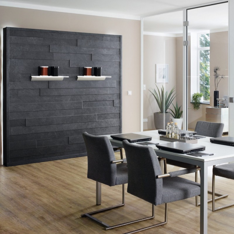 Wooden panels 8475 Mustang KRONOSPAN are a new contemporary approach in interior design, with which you can turn the wall into an accent in any interior. The decor of the panels comes as close as possible to the look of a stone slab. The decor fits well in classic and avant-garde spaces.