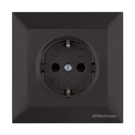 The single electrical socket , Candela series of MUTLUSAN ELECTRIC is designed for concealed installation in a single console.The method of installation is done with screws. The rated current is 16A, the voltage 230V and the maximum power 3500W. Its operating frequency is 50 Hz and has a degree of protection IP20. The operating mode is restraining.The electrical socket has no light indication and is made of black plastic.