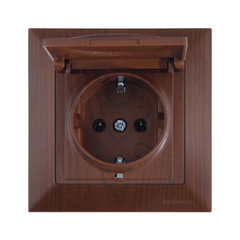 The single electrical socket , Candela series of MUTLUSAN ELECTRIC is designed for concealed installation in a single console.The method of installation is done with screws. The rated current is 16A, the voltage 230V and the maximum power 3500W. Its operating frequency is 50 Hz and has a degree of protection IP20. The operating mode is restraining.The electrical socket has no light indication and is made of walnut-colored plastic.