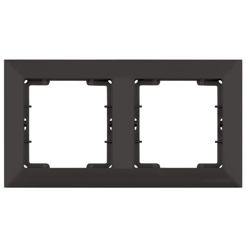 Decorative double frame-module for switches and sockets from the Candela series of MUTLUSAN ELECTRIC. The decorative frame is made of black plastic.