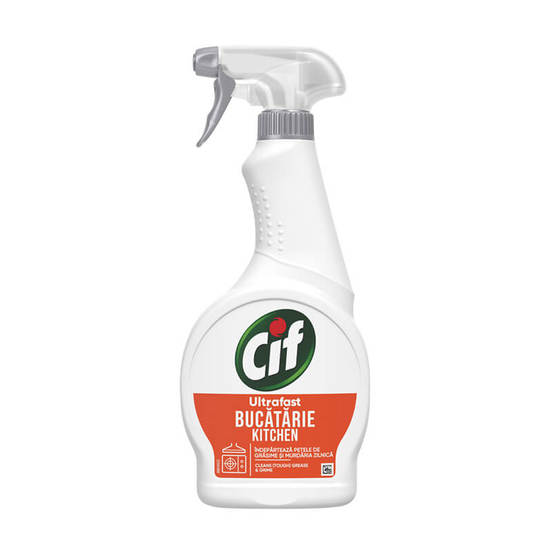 CIF spray degreaser. The kitchen detergent is suitable for cleaning stoves, ovens, countertops, etc. It has a fast-acting fat-removing formula. Cleans surfaces quickly and easily and is enriched with citrus extracts.