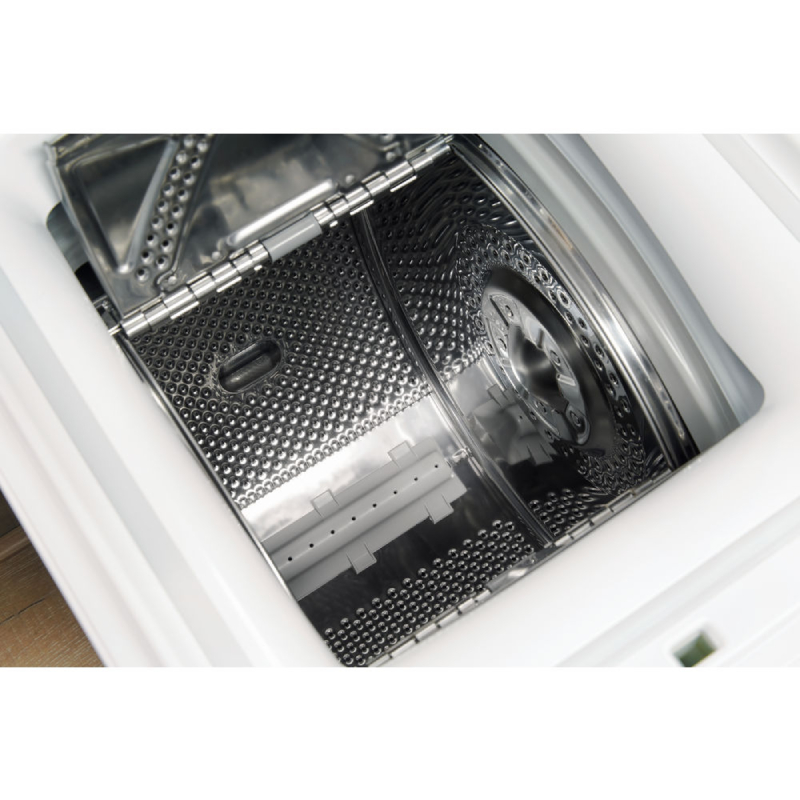 The freestanding BTW D612353 washing machine from INDESIT is top-loading, compact and an ideal solution for small spaces. The Extra Wash option is the ideal solution for all dry, stubborn stains such as coffee or chocolate. Combine the option with each fast cycle to enjoy exceptionally clean clothes.