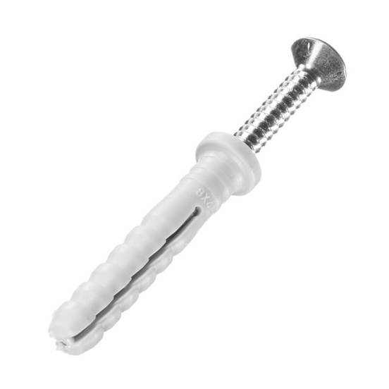 ELEMATIC's UCX plastic dowel is designed for concrete, stone and solid brick. It is suitable for installation of cable ducts, paneling, metal profiles, frames, brackets and suspended ceilings in dense building materials. The dowel has a hidden collar at its open end, and the nail has a milling - hidden - head with a cross slot.