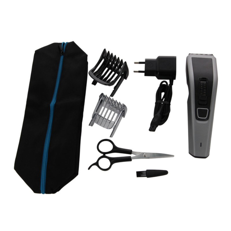 - Accessories: adjustable hair comb, additional adjustable beard comb, scissors, travel case, cleaning brush