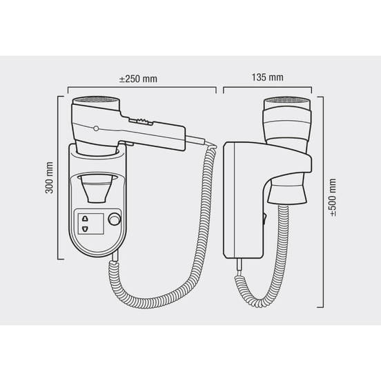Wall hair dryer Action Super Plus from VALERA is made in detail, with Swiss precision. Buying a VALERA hair dryer, you get a product of tried and tested production, with traditions from 1955. This jewel can adorn the bathroom wall of any sophisticated esthete. At the same time, it satisfies men's needs, providing the opportunity to include a razor. With its 1600W, it provides fast drying of any hair.