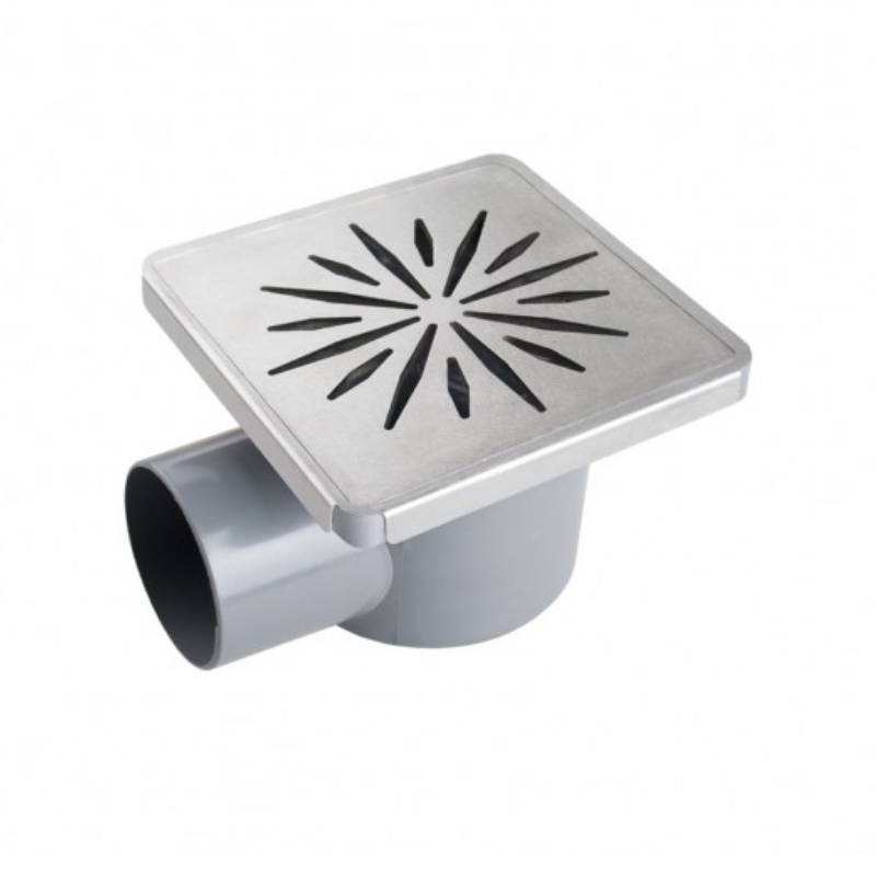 Horn floor siphon with hole size Ф50 mm. It is made of PVC with stainless steel grille and chrome protective coating. It is equipped with a valve against unpleasant odors.