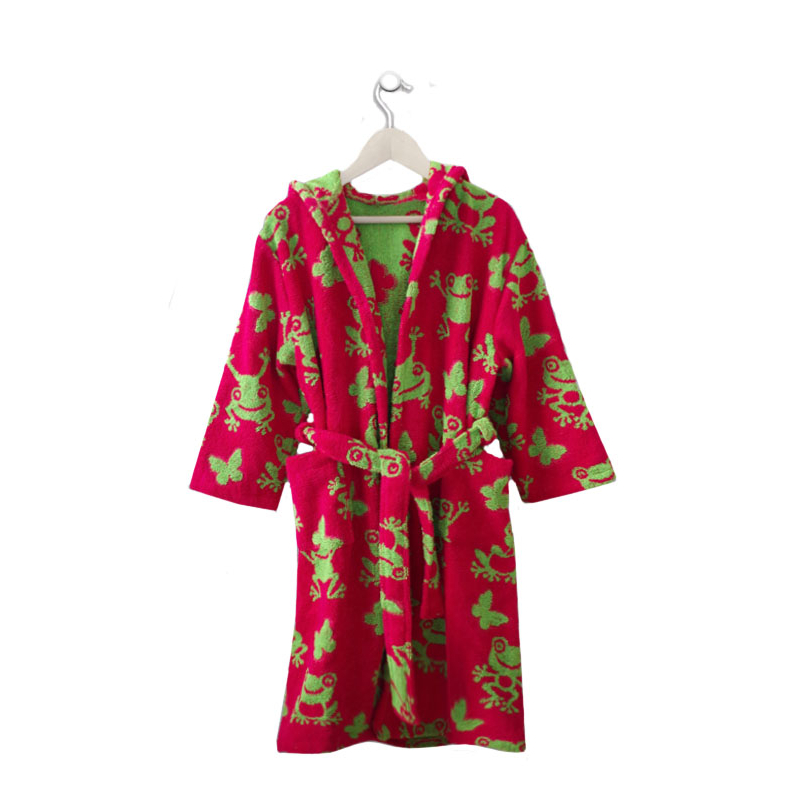 The fluffy children's bathrobe Frog of the Bulgarian brand YANA is made of 100% cotton with a density of 400 g/sq.m, which contributes to its high absorbency. The children's bathrobe is 110 cm in size and is suitable for children from 2 to 4 years of age.