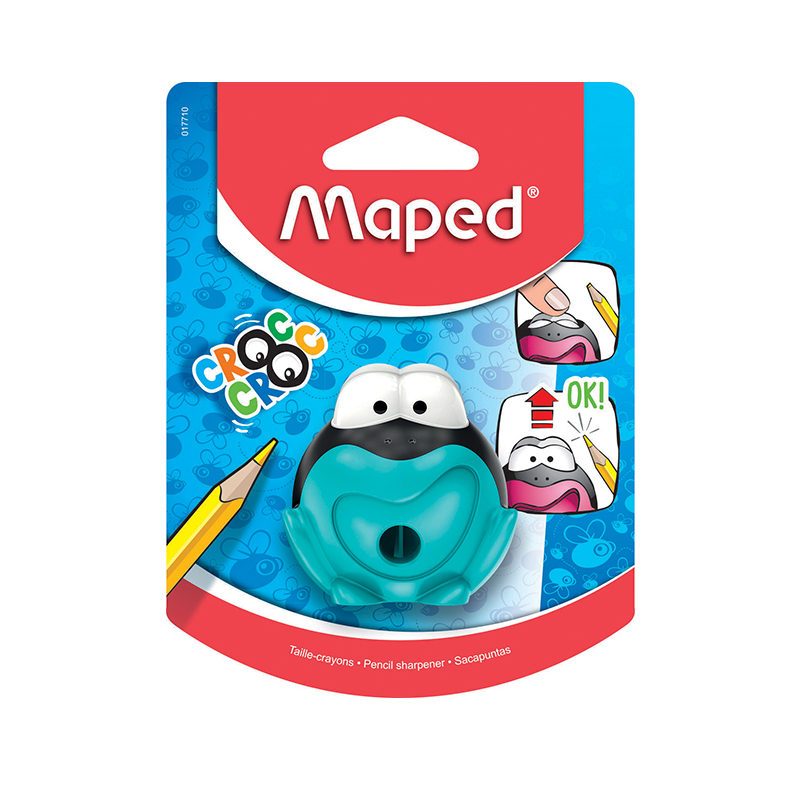 The MAPED Croc Croc pencil sharpener is a single frog-shaped sharpener. It is characterized by a patented interactive sharpening system - the frog's eyes pop out after the pencil is sharpened. The product is extremely fun and interesting for children.