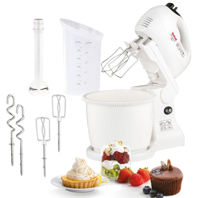 Kitchen mixer HT41313E with 2. 5-liter bowl, quiet and powerful motor with 450W power, 5 stages of operation and turbo function is an impressive device of TEFAL.HT41313E is a reliable helper in baking cakes, and not only, ie. by professionals and consumers, it is defined as a powerful and reliable choice for every housewife. The mixer is extremely light and has an enviably quiet motor. For your convenience, you can knead without hands. This is possible thanks to the automatically rotating bowl with stand and capacity of 2.5 liters.
