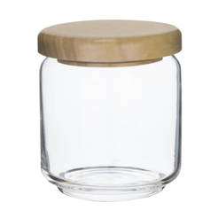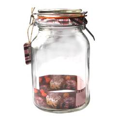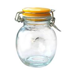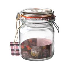 Jar for storage of spices, cereals and legumes. The jar is made of glass. It offers a secure closing mechanism that guarantees protection against pests and moisture.