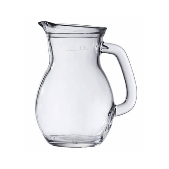 Glass jug for water and soft drinks with a capacity of 0.5 liters.