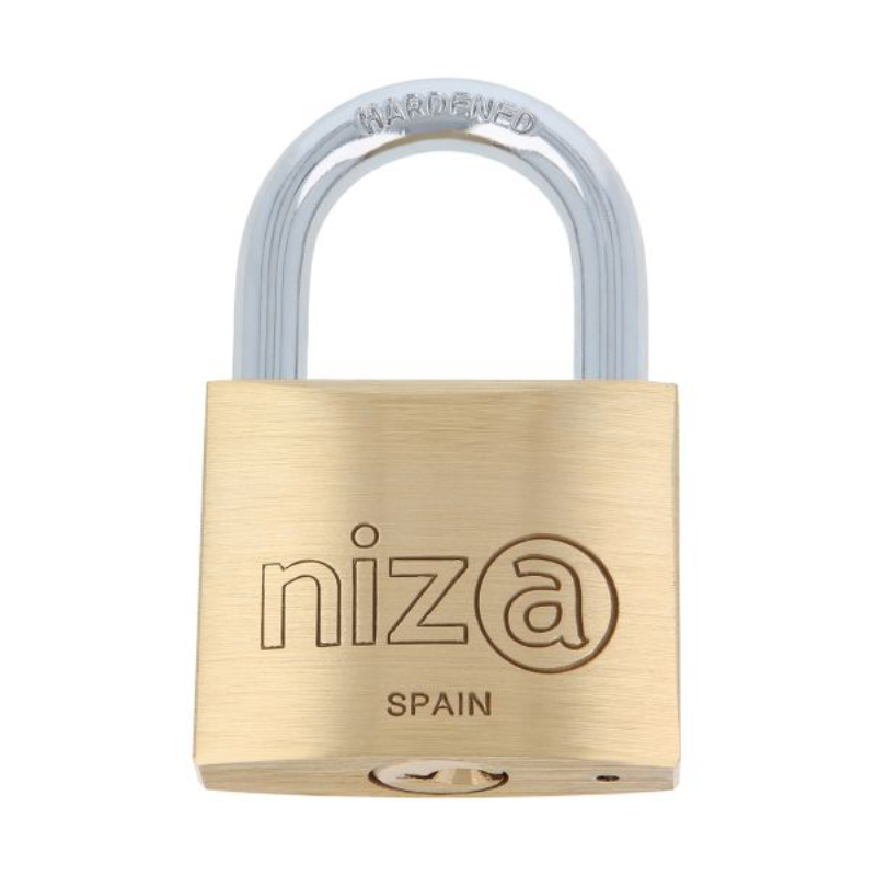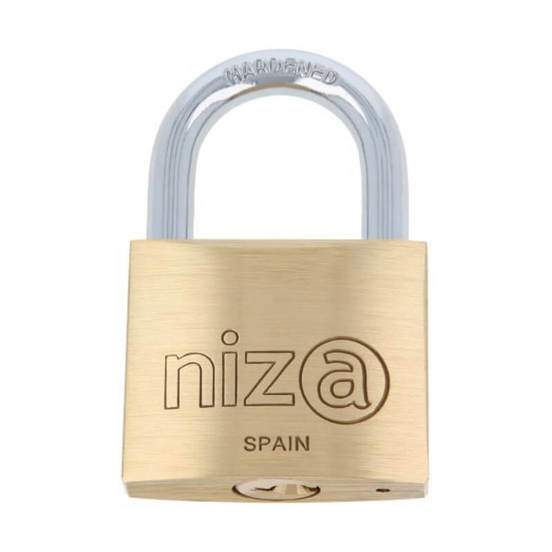 Brass padlock, model Niza from AMIG is complete with 2 keys, in private. It is suitable for locking personal boxes, suitcases, lockers, bags and more. It has a reinforced hardened bracket.