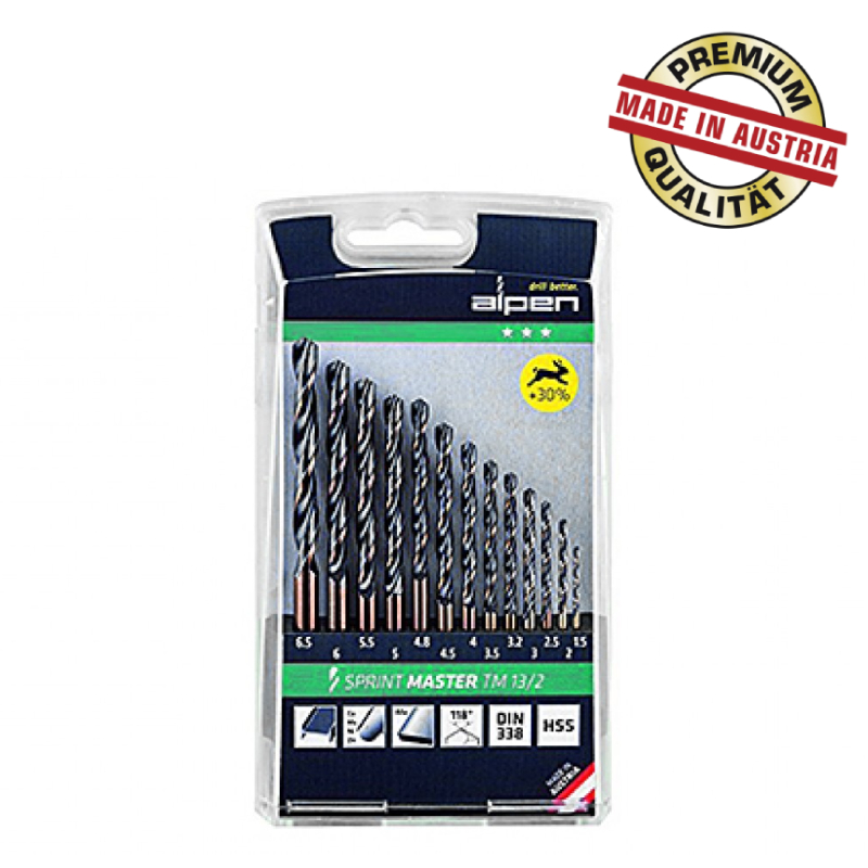Drills and drill bits, as well as all ALPEN tools, are manufactured only in Austria under strict quality control.
