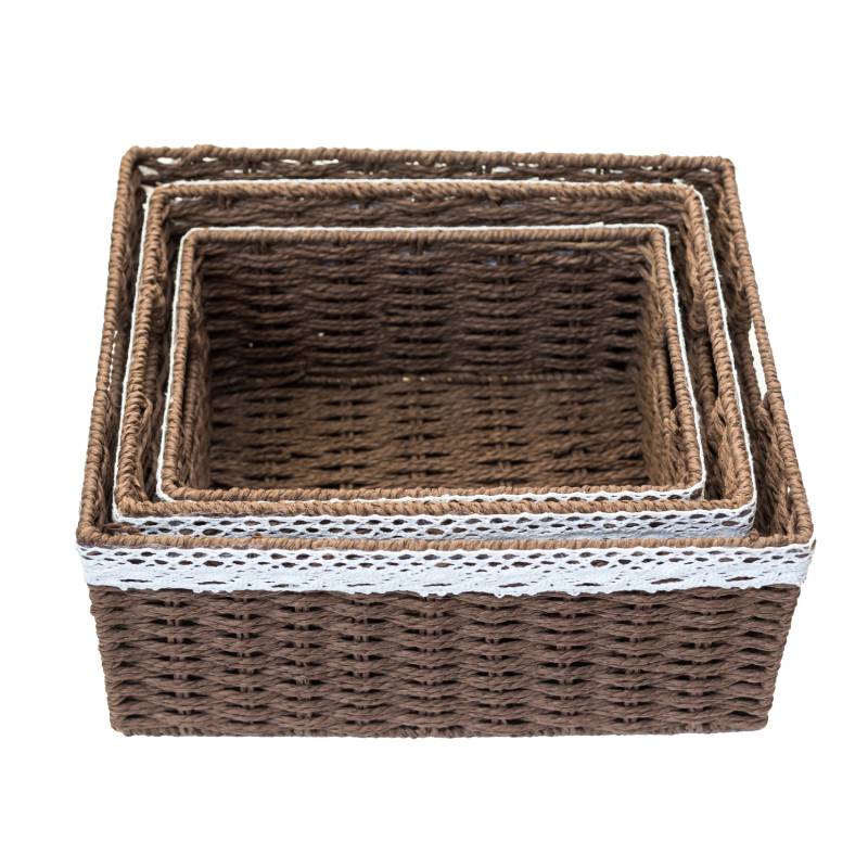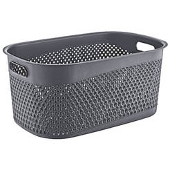 Wicker storage pan made of rattan and textile. The pan is ideal for organizing things in the home. Available in dimensions 32 x 25 x 16 cm.