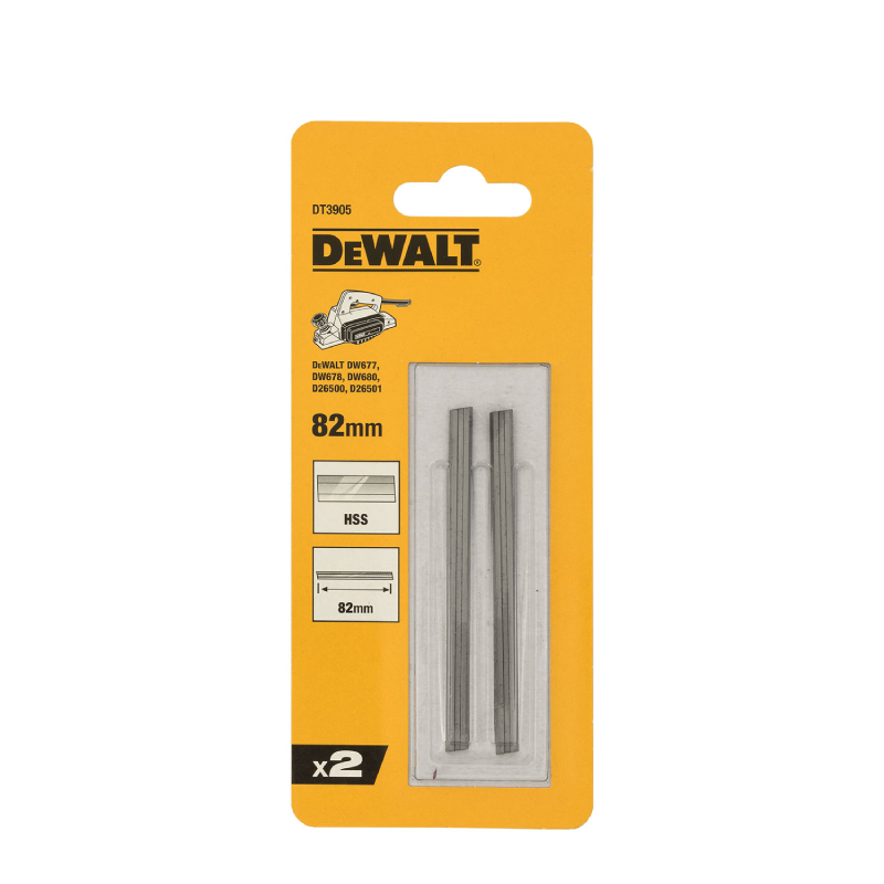 DEWALT double-sided knives 065 DWT 682 are used with electric planers models DW677, DW678K, DW678EK, DW680K. The knives are made of high speed HSS steel with a length of 82 mm. Available in a set of 2 pieces.