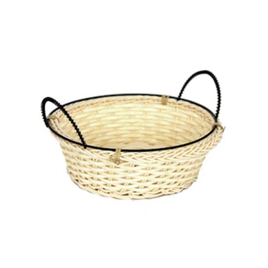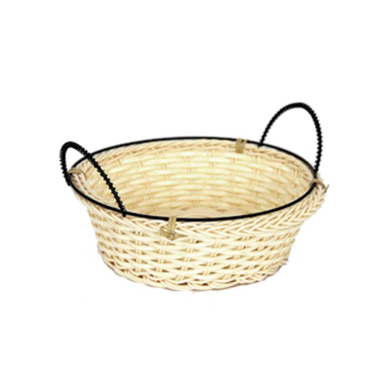 Rattan bread pan with metal handles and size 20 x 7 cm. The bread pan is protected from moisture and can be used outdoors. It is suitable for outdoor tables.