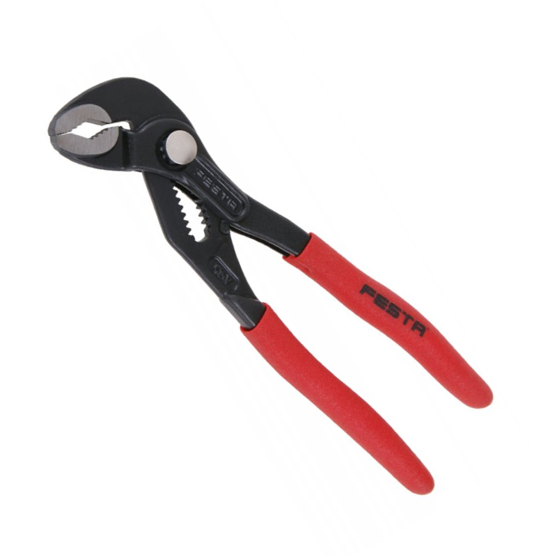 FESTA gargoyle pliers are adjustable pliers made of CrV steel alloy steel. The handle is equipped with a soft anti-slip rubber coating for more comfort during operation.The shape of the jaw with ground teeth is optimized for tightening pipes and nuts. The model is characterized by anti-corrosion surface treatment.The button lock is very durable and prevents spontaneous adjustment of the distance.