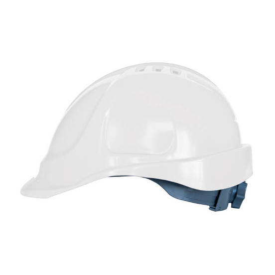 The KANTON construction protection helmet has a polyethylene body.The head guard has a screw size adjustment mechanism. It is made of HDPE high density polyethylene, with 6 ventilation nozzles, six-point mounting and textile cover. Sweat-absorbing tape contributes to more comfort during work. The ventilation helmet protects against electric shock up to 440V.
