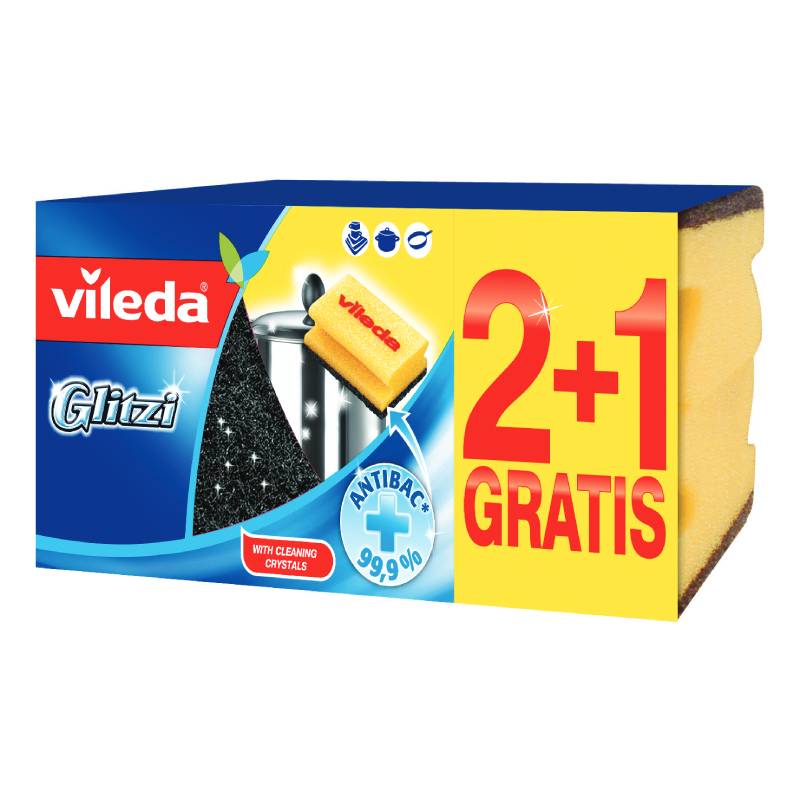 Set of 3 universal kitchen sponges for washing kitchen utensils and cutlery. Suitable for all surfaces.