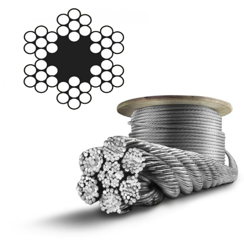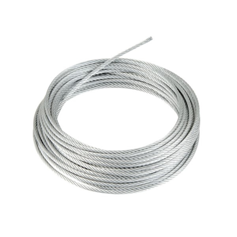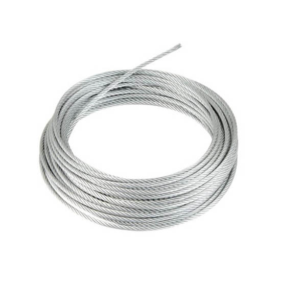 The diameter of the steel rope is 2 mm. Rope construction 6 x 7, where 6 is the number of bundles in the rope and 7 is the number of wires in each bundle. It is made of high quality galvanized steel with DIN 3055 standard.