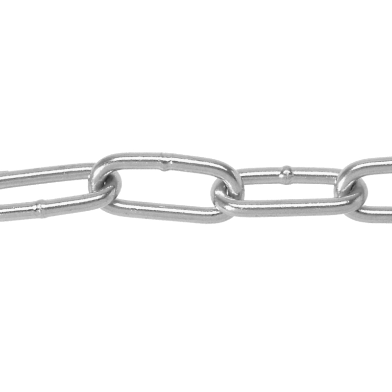 The VORMANN long link chain C is made of high-quality galvanized, stainless steel to DIN 5685. It is characterized by welded long links and is intended for agricultural use. The diameter of the unit is 3 mm, the length is 26 mm and the height of the unit is 11.4 mm. The model has a tensile strength - 350 kg, and the maximum load capacity of the chain is 70 kg.