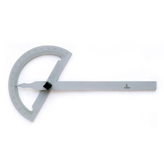 The ZIIU STANDART protractor is characterized by an easy-to-read scale and accurate marking of angles from 0 to 180°. The model has a fixing nut. The length of the arm is 300 mm and the diameter of the rock is 200 mm. It is made of high quality, stainless steel with chrome finish.
