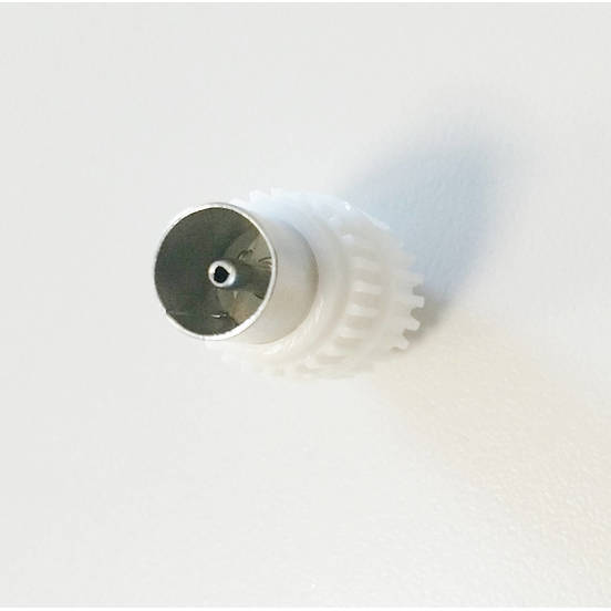 The product is of the male tip type, and its installation is extremely fast and convenient. The socket is placed on the end of the coaxial cable, then placed in the antenna output of the TV.