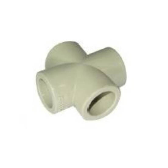 Polypropylene cross with diameter Ф25 mm. For cold and hot water, heating, compressed air systems, resistant to almost all chemicals.