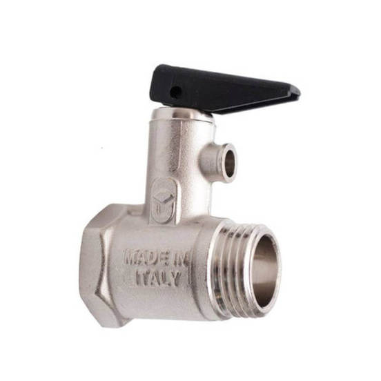 Safety valve with lever, designed for installation immediately before the boiler. It is a combined device for protection against pressure in domestic water heaters and batteries. The connection size of the thread is 3/4". The safety valve is extremely important in the operation of almost all types of installations, heating systems, etc. It is suitable for water and compressed air. It is made of high quality brass and can be installed in almost any position.