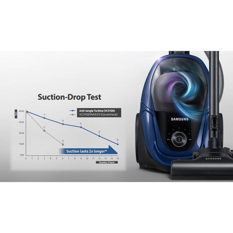 VC07M3110VB/GE is a vacuum cleaner from SAMSUNG, which immediately stands out from its competitors. Extravagant design, eye-catching color, modern technology for garbage collection.