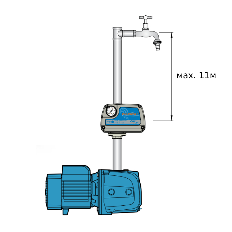 The Talento-2 pump pressure switch from the CITY PUMPS brand is a device for automatic control of electric pumps installed in water systems, which replaces electromechanical pressure switches. Its power is 1.5kW /2 hp/.It is characterized by an operating pressure of 15 bar, the pressure at stop/start is 2. 2 bar and the flow rate is 200 l/min /12 cubic meters/h/.The appliance starts and stops the pump when opening and closing the tap, maintains a constant pressure during water supply and stops the pump in case of water shortage, thus protecting it from dry running.The model prevents cavitation effects.