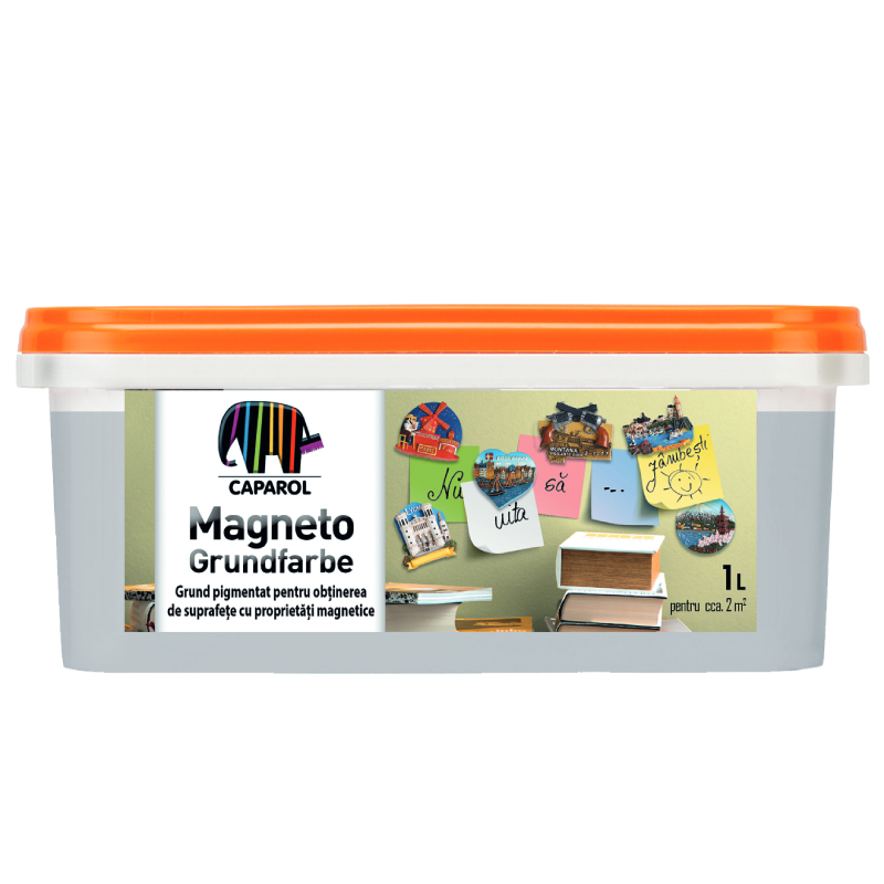 CAPAROL's Magneto Grundfarbe acrylic primer, with iron oxide pigments, gives magnetic properties to the wall surface. In this way, paintings, drawings, recipes, etc.can be glued to the walls. The coating is suitable for homes, kitchens, children's rooms, offices, shops or medical offices. It is characterized as an ecological primer with low odor and solvent-free. Iron oxides in its base are not conductive. Gives very good adhesion of magnets on the painted surface. Available in silver-gray with a matte finish.