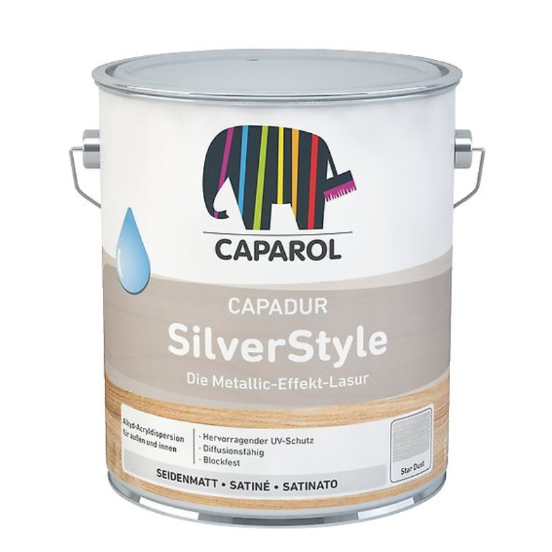 CAPAROL coating is characterized by a wonderful bronze-aluminum effect with exceptional resistance to UV rays, thanks to reflective pigments. Capadur Silver Style has very good protection against moisture in stable wooden building elements and high diffusion capacity. It is soluble in water and complies with VOC directives (2007 and 2010).