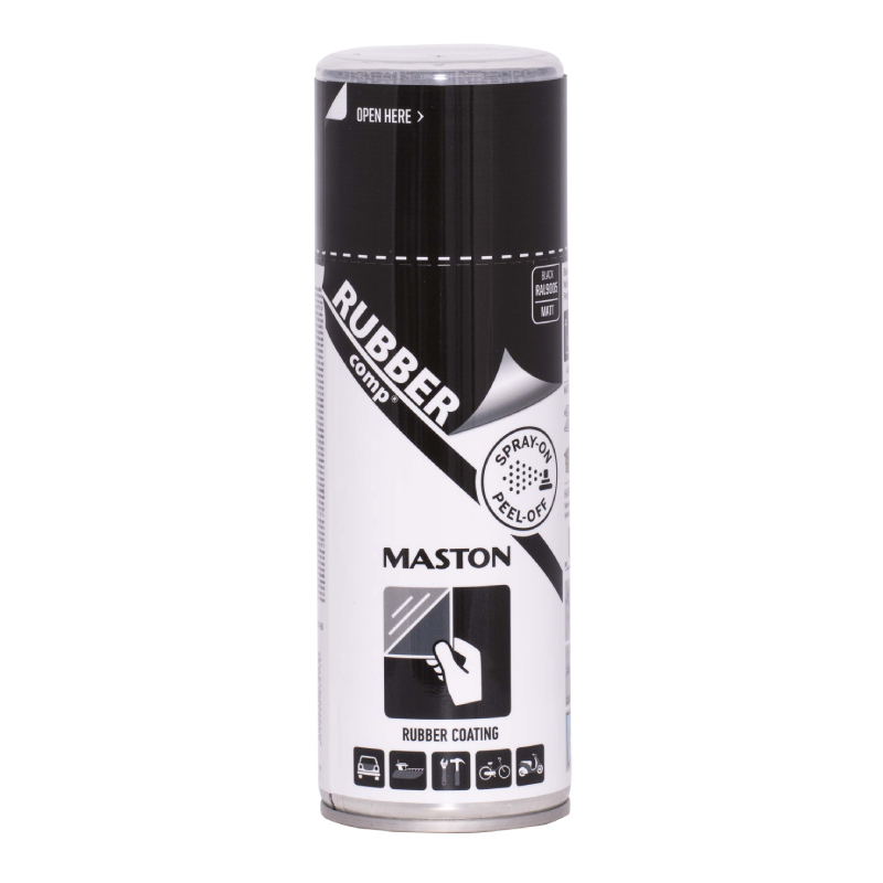 MASTON Rubber comp rubber spray is a multifunctional rubber coating for interior and exterior use.Can be used on various types of material such as concrete, iron, wood, glass, plastic, rattan, rubber. Thanks to the innovative technology of its creation, the spray is very easy to apply. Rubber protects covered items from moisture, acids, wear, corrosion and slipping and provides a comfortable, controlled grip. The rubber coating remains flexible and stretchable over time. It will not become brittle in extreme weather conditions.Withstands temperatures from -30°C to +90°C.