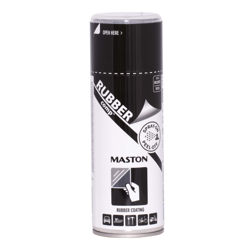 MASTON Rubber comp rubber spray is a multifunctional rubber coating for interior and exterior use.Can be used on various types of material such as concrete, iron, wood, glass, plastic, rattan, rubber. Thanks to the innovative technology of its creation, the spray is very easy to apply. Rubber protects covered items from moisture, acids, wear, corrosion and slipping and provides a comfortable, controlled grip. The rubber coating remains flexible and stretchable over time. It will not become brittle in extreme weather conditions.Withstands temperatures from -30°C to +90°C.