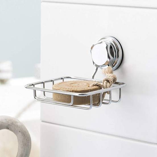 Bathroom soap dish with vacuum gluing - no need to glue or drill the tiles in the bathroom. The soap dish measures 13.2 x 13.2 x 10 cm and has a maximum load capacity of up to 4 kg.