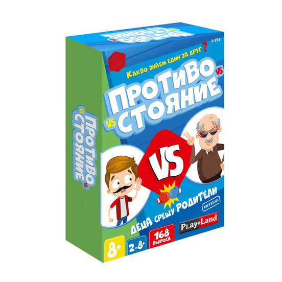 The board game "Confrontation - Children vs. Parents " by PLAYLAND is intended for children and children over 8 years of age.It is a team game, which is played by teams of two or more members in each team.It is also a lot of fun, offering a lot of laughter and fun.