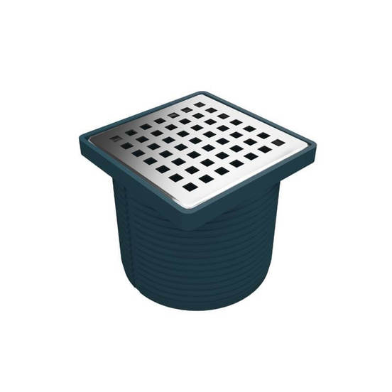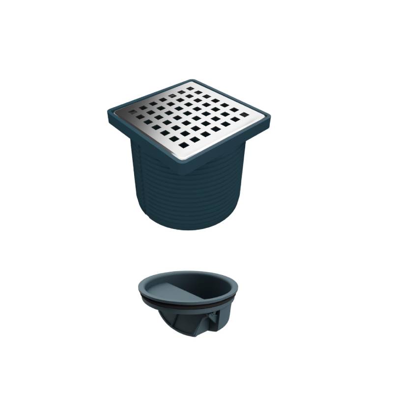 Straight floor siphon for bathroom complete with valve against return of unpleasant odors from the sewer. The siphon grille measures 10 x 10 cm and is made of stainless steel, and the body of the siphon is made of PVC.The siphon can be adjusted according to the height of the screed and the tiles.