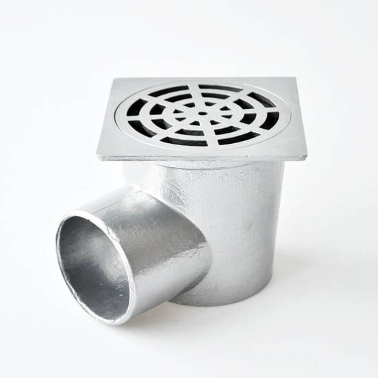 Horn floor siphon with hole size Ф100 mm. It is made of stainless steel and aluminum.