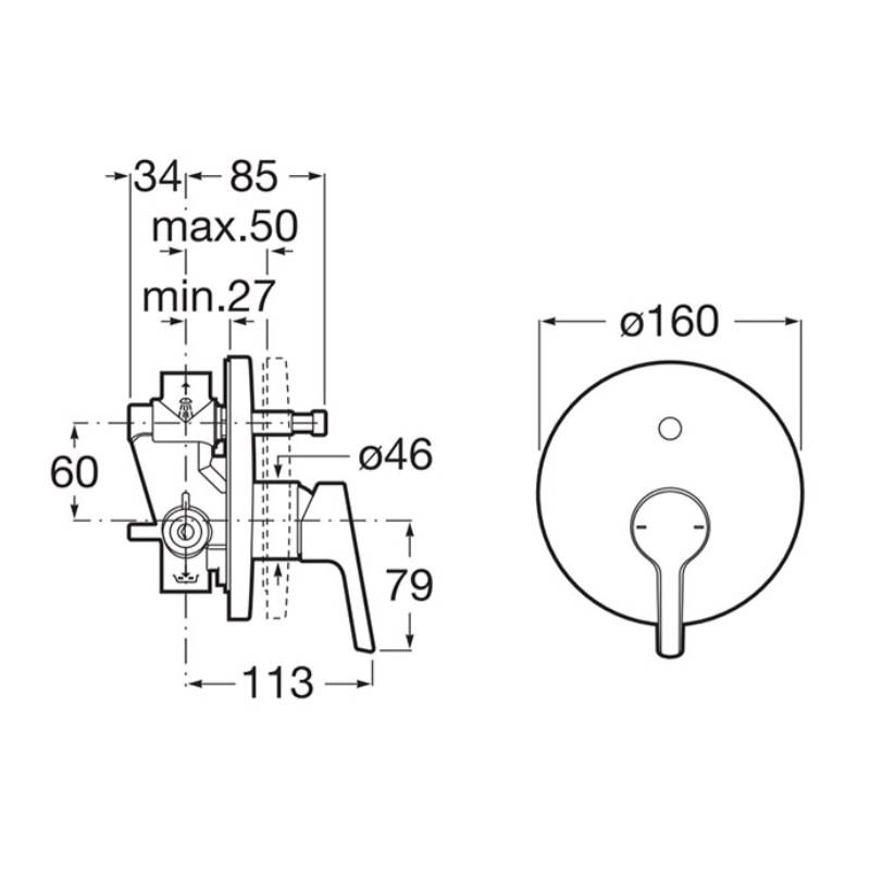 The Malva series of the ROCA brand is a combination of brass products and is designed to give a complete finish to the bathroom, allowing overall coordination. The Malva bathroom set bears all the hallmarks of elegance, modern design and efficiency. The faucet has a water diverter switch. Its dimensions are 160 x 115 mm, water pressure from 0.5 to 3 bar. The mechanism in high quality, ceramic for smooth control. The parts feature EverShine chrome finish.