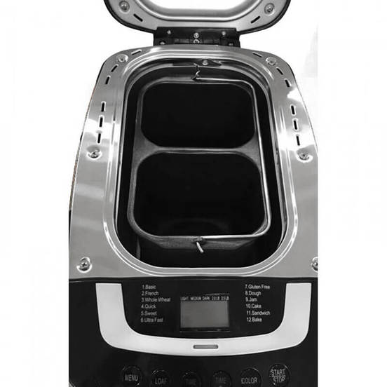 The practicality of the bread maker is complemented by the keep-warm function for up to 60 minutes, which ensures that the bread remains fresh and warm after baking. In the event of a power outage, the appliance has a 10-minute memory, which allows the program to be continued without losing progress. The set includes useful accessories - a measuring spoon, a cup and a recipe book for various types of bread. The bowl has a non-stick coating, which makes it easy to remove the finished products and clean after use.