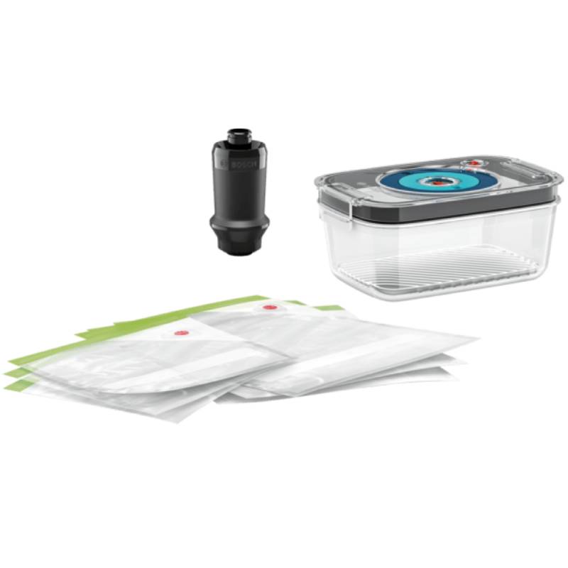 The set of vacuum accessories is compatible ( vacuum pump)with the ErgoMixx series and the Bosch VitaMaxx blender. They create an air-free environment and thus keep food fresh for longer in your refrigerator, freezer or shelf.