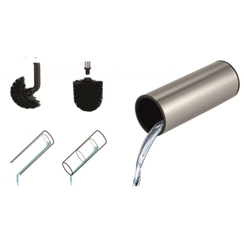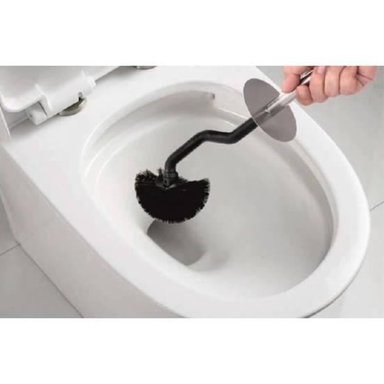 The brush for the toilet bowl of INTER CERAMIC is made of high quality stainless steel SS 410. The model has an elegant design in chrome color. The PVD coating protects against fingerprints and keeps the brush clean at all times. The brush is freestanding and is suitable for toilet bowls without rings.