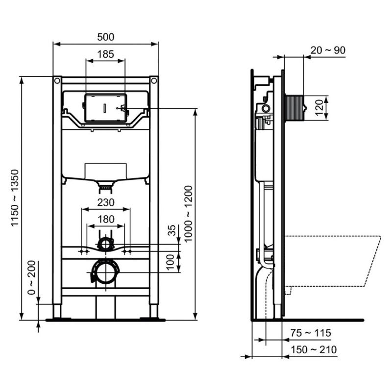 Features of ProSys 120 M Ideal Standard R020467 toilet installation structure: