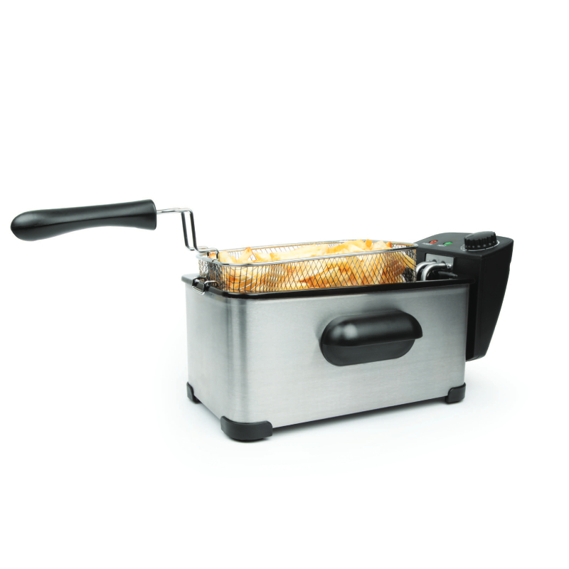 The fryer is completely detachable for maximum convenience of cleaning and maintenance. It has a mechanical control panel that is easy and trouble-free to use. The anti-splash cover is also stainless steel, durable and easy to clean.