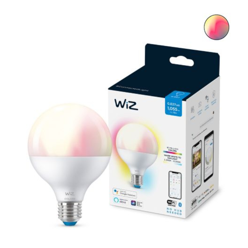 The WiZ LED bulb has a G95 type balloon and, like the other products in the series, is Smart. Create an atmosphere at home to your liking with a choice of 16 million colors and from warm to cold white light. Thanks to the Smart function and telephone control, you can set a schedule for turning the lamp on and off according to daily or weekly habits. Operate with a smartphone or voice command and adjust remotely by lighting, even when you're not home. WiZ lights connect to your existing Wi-Fi, and no additional hardware is required. The LED Smart Bulb is easy to turn on and operate, adjustable from hot to cold light with a preset mode.The life of the bulb is about 25,000 hours or up to 50,000 switching cycles.