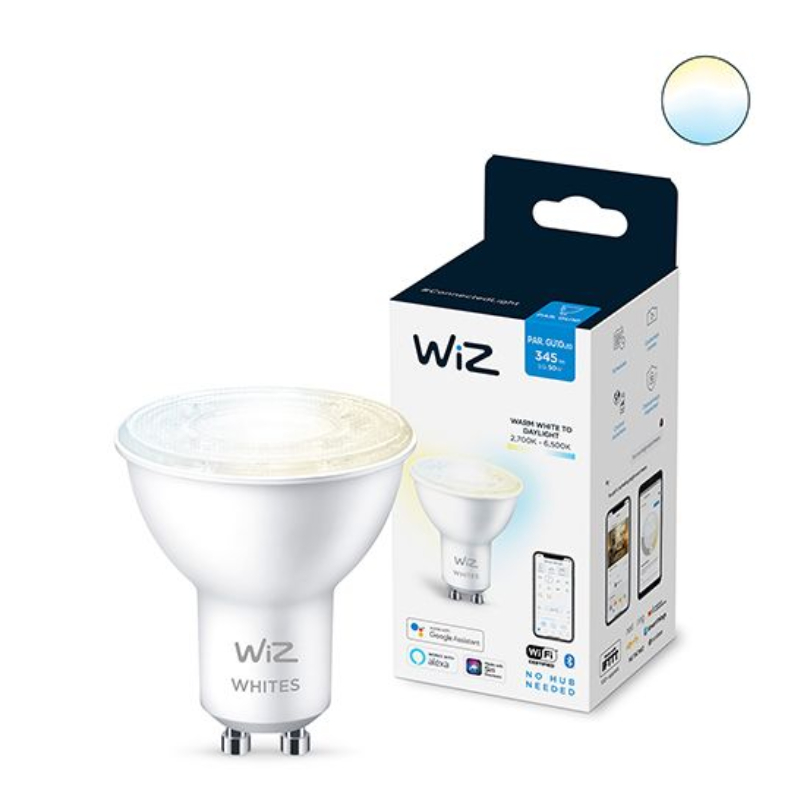 The WiZ LED bulb has a GU10 type balloon and, like the other products in the series, is Smart. Create an atmosphere at home to your liking by choosing between warm and cold white light. Thanks to the Smart function and telephone control, you can set a schedule for turning the lamp on and off according to daily or weekly habits. Operate with a smartphone or voice command and adjust remotely by lighting, even when you're not home. WiZ lights connect to your existing Wi-Fi, and no additional hardware is required. The LED Smart Bulb allows you to bring different shades of warm to cool white to help you focus or relax.The life of the bulb is about 15,000 hours or up to 50,000 switching cycles.