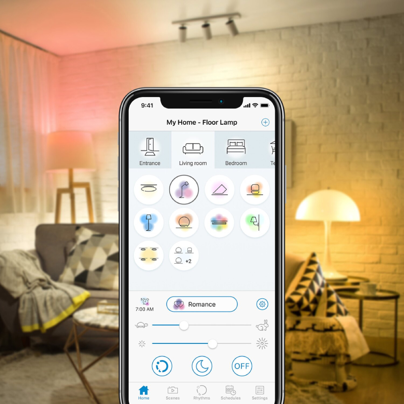 Each WiZ lamp has 2MB of flash memory needed for smooth execution of complex software, management of secure updates and storage settings. This memory also allows the light to be preloaded with dynamic light modes such as the popular fireplace, mesmerizing deep dive or fun - ranges to enjoy, even without your smartphone nearby.